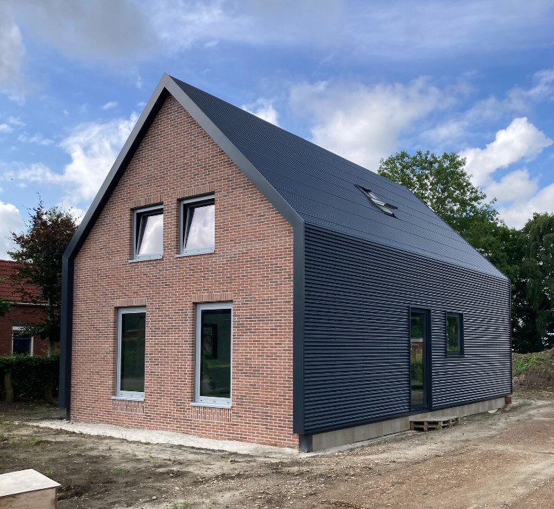 De Lofthome in Groningen is casco opgeleverd, de eigenaren zullen zelf de afbouw verzorgen. Deze woning heeft aan de voorzijde een bakstenen gevel.